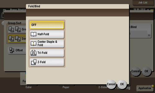 Select how to fold or bind paper.