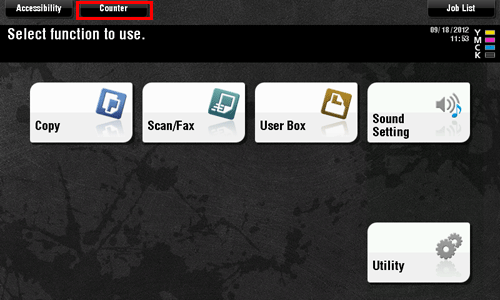 The counter indicates the total number of pages printed on this machine on a function or color basis. Check counter information on the Control Panel of this machine. When necessary, counter information can be printed in list form.