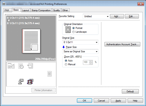 If you are using this machine for the first time, apply the optional device installation and authentication settings to the fax driver.