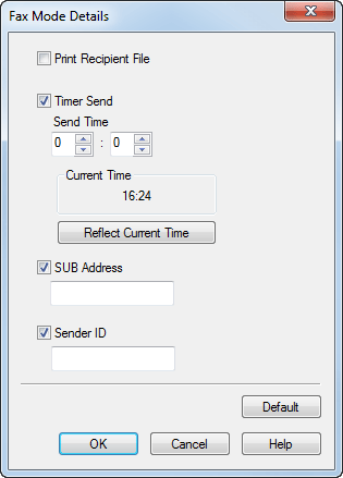 [Timer Send] | Select this check box to set a time to send a fax. The fax is automatically sent at the specified time.