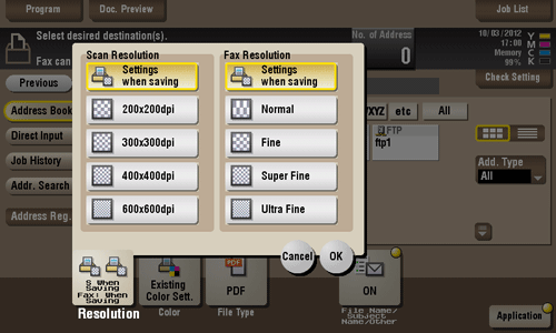 Select the print resolution during sending.