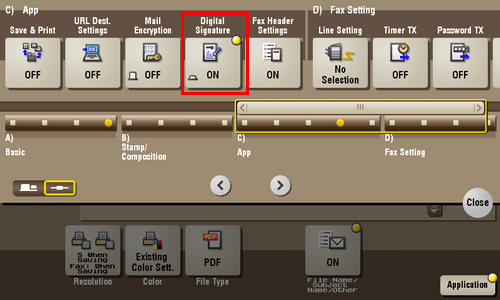 If you cannot change the [ON] or [OFF] state, it is assumed that whether or not a digital signature is always added is specified by the administrator.