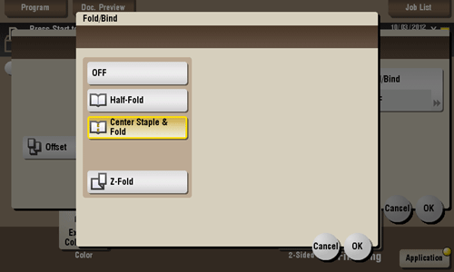 HomeDescriptions of Functions / Utility KeysCenter Staple & Fold
