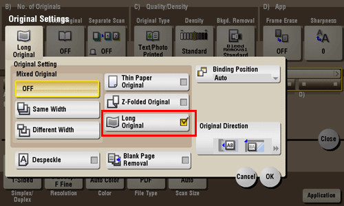 Select this option when loading a long original that is larger in the feeding direction than the full standard size (11 17 or A3).