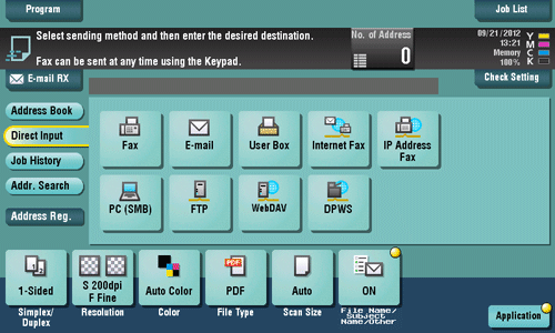 [E-mail] | Enter a destination E-mail address when scanned original data is sent by E-mail attachment. |