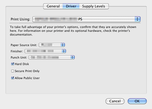 In Mac OS X 10.5/10.6/10.7/10.8, click [Driver].