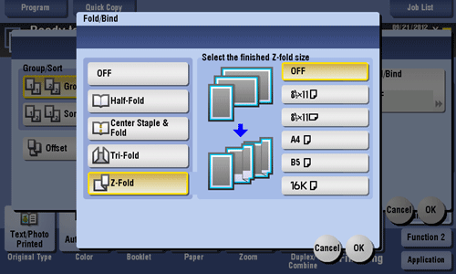 To use the Z-fold function, the optional Finisher FS-535 and Z Folding Unit are required.