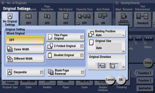 • [Z-Folded Original]: Even the original sizes of folded originals can be detected accurately. For details, refer to Here.
