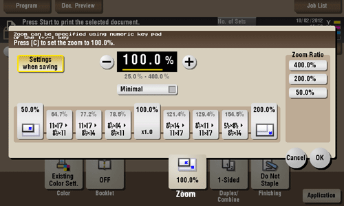 [Zoom Ratio] | Prints the original in the preset scale. |