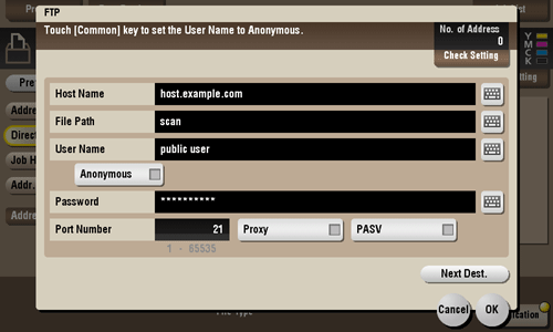 Enter the name of a destination folder in the FTP server specified in [Host Name] with up to 127 bytes.