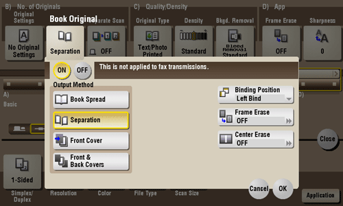 [ON]/[OFF] | Select [ON] to specify Book Original. |