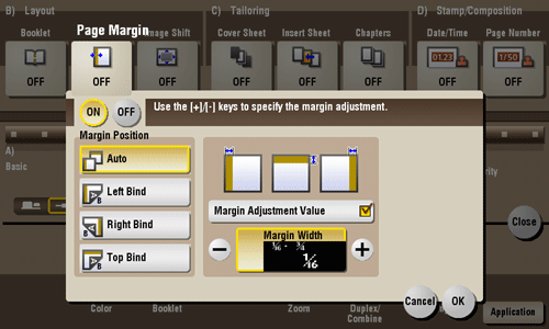 [ON]/[OFF] | Select [ON] to set a page margin. |