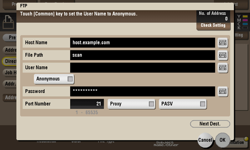 [Anonymous] | When authentication is not required for the destination FTP server, select this item. |