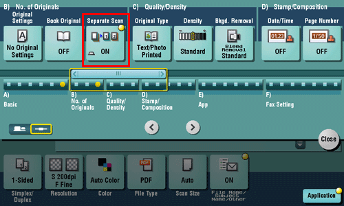 In [Separate Scan], you can switch between the ADF and Original Glass to scan the originals.