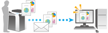 The Scan to E-mail function converts original data scanned by this machine into a file supported by a computer, and sends it to any E-mail address as an E-mail attachment.