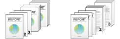 If you select "Sort", the sheets are sorted and output in sequence. For example, "pages 1, 2, 3, 4 and 5" are printed as a single set and output, and the specified number of sets of sheets is output. While if you select "Group", the sheets are grouped and output by page. For example, the first page is printed three times and output as a group. Then, the second page is printed three times and output, the third page is printed three times and output, and so on.