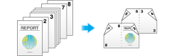 If the optional Finisher FS-534 and Saddle Stitcher are installed in the machine, you can create booklet-form documents by folding the printed sheets in the center or by half-folding.
