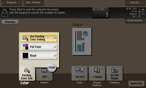 Select a Color mode to use to print files.