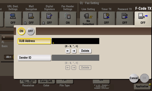 F code is a communication procedure that is standardized by CIAJ (Communications and Information Network Association of Japan). Confidential TX and Relay Distribution are available if a remote machine supports F-code communications.