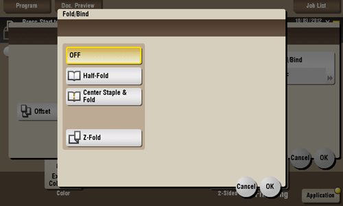 • To use the Fold/Bind function, the optional Finisher and Saddle Stitcher are required.