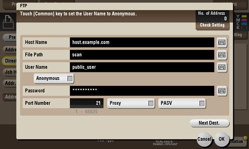 Enter the name of a destination folder in the FTP server specified in [Host Name] with up to 127 bytes.