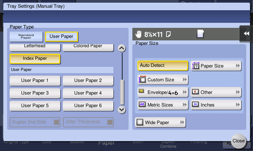 When selecting a paper size other than for paper trays or printing on envelopes or transparencies, use the Bypass Tray.