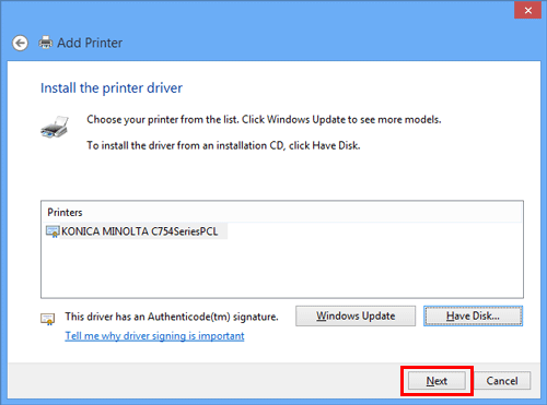 If the [Install the printer driver] dialog box appears, go to Step 12.