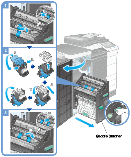 Be sure to replace the Staple Cartridge after the relevant message has appeared. If a Staple Cartridge is removed before the relevant message appears, it may result in a failure.