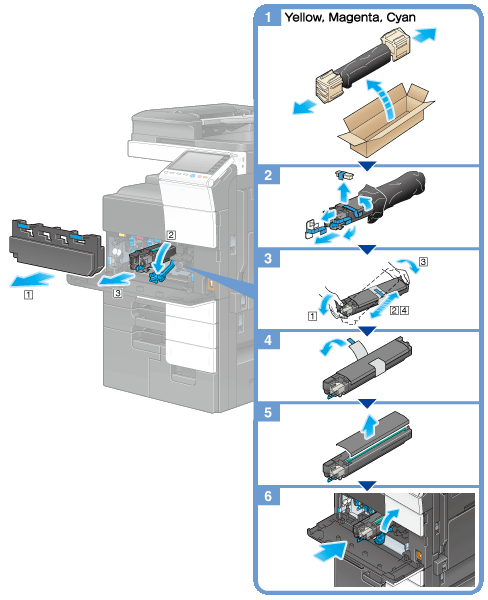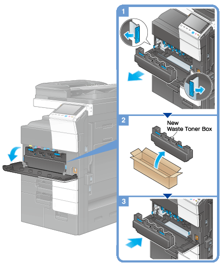 Your service representative will recover your used Waste Toner Box. Place a cap on it and store it in a box.