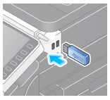 Insert a USB memory device into the USB port (close to the front panel) of the machine.
