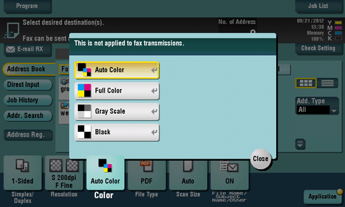 [Auto Color] | Scan by automatically selecting either [Full Color] or [Gray Scale] according to the original color. |