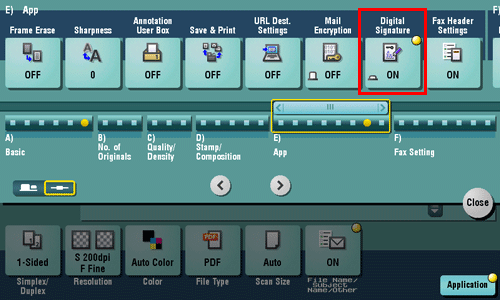 If you cannot change the [ON] or [OFF] state, it is assumed that whether or not a digital signature is always added is specified by the administrator.