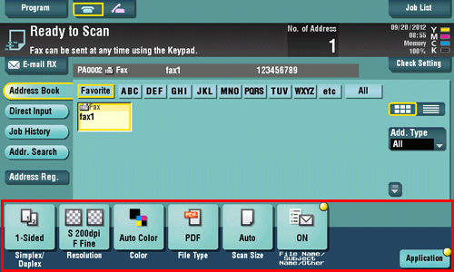 Tap [Application] - [Fax Setting] - [Quick Memory TX], then tap [ON].