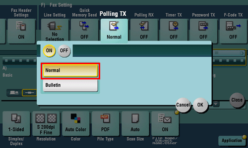 Tap [Application] - [Fax Setting] - [Polling TX], then tap [ON].
