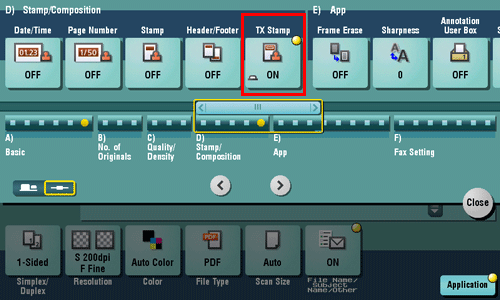 When scanning originals using ADF, a TX Stamp is printed on a scanned original to certify that the original has been scanned. It is used when sending a fax.