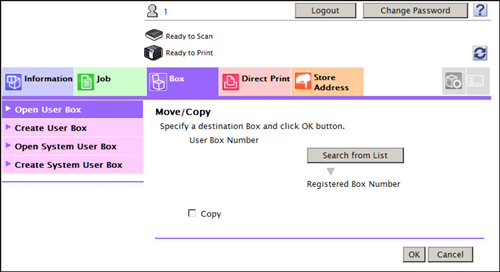 • You can also open a desired User Box by entering its number directly in the [User Box Number] column.