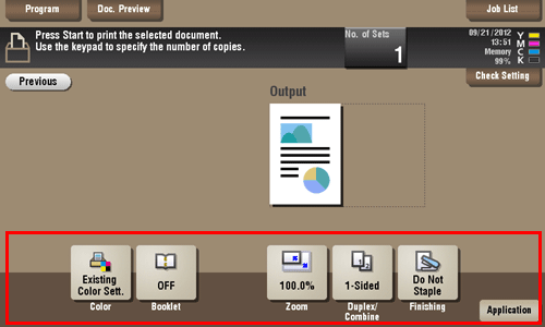 You can set a number of copies, 2-sided Print, Color, and Finishing if necessary.