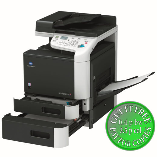 » More OffersFree Konica MinoltaBizhub C253.5p per colour copy0.4p per B&W copyMonthly volume:- 500 colour, costing £17