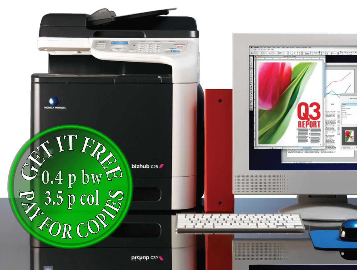 Get a free Konica Minolta Bizhub C25, you just pay for the copies!