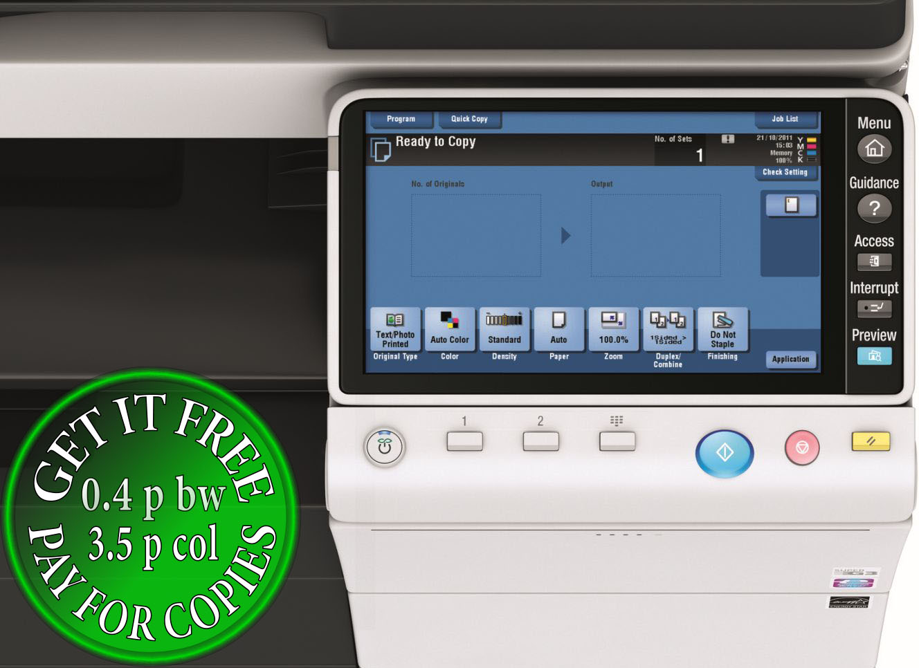 Get a free Konica Minolta Bizhub C284, you just pay for the copies!
