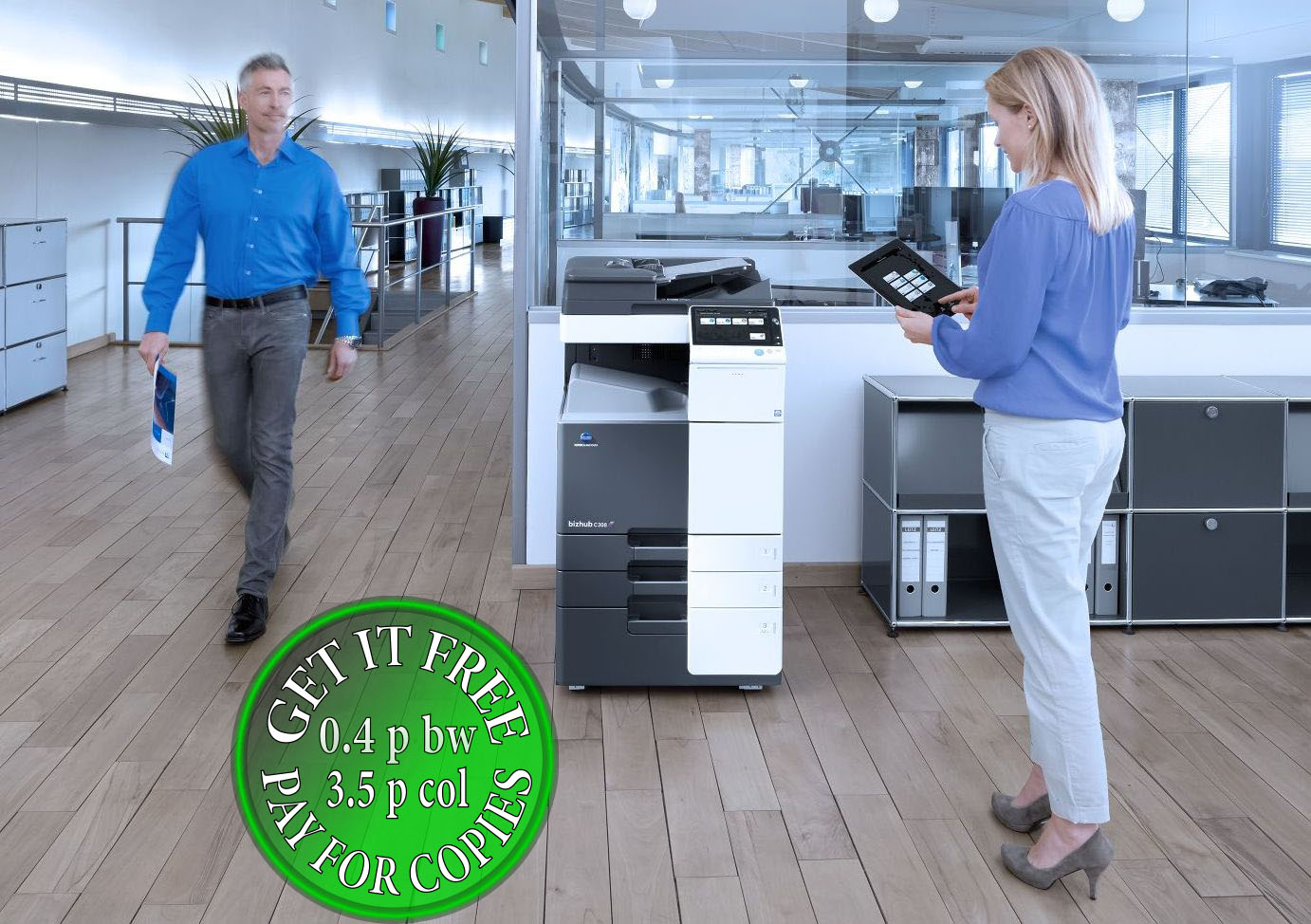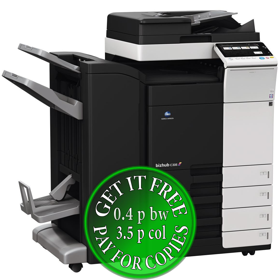 Get a free Konica Minolta Bizhub C308, you just pay for the copies!