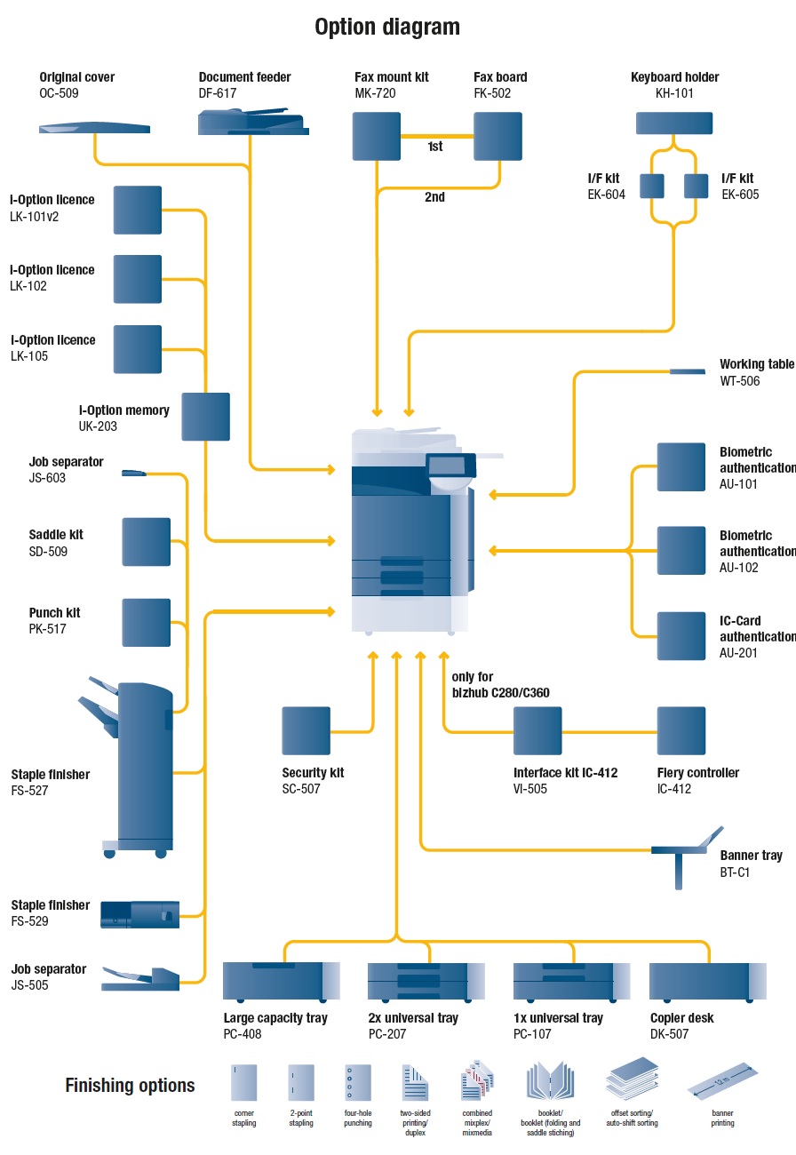 The bizhub C360 is Konica Minolta’s innovative triumvirate for every-day document production in the corporate environment – and perfect for offices and workgroups in finance and accounting departments, in personnel, logistics and many other areas where the bulk of the work is produced in black & white. This product series offers truly affordable, high-quality b/w imaging at similarly low cost as all-b/w devices. But the bizhub C360 has an extra feature: colour that can be taken advantage of whenever required.