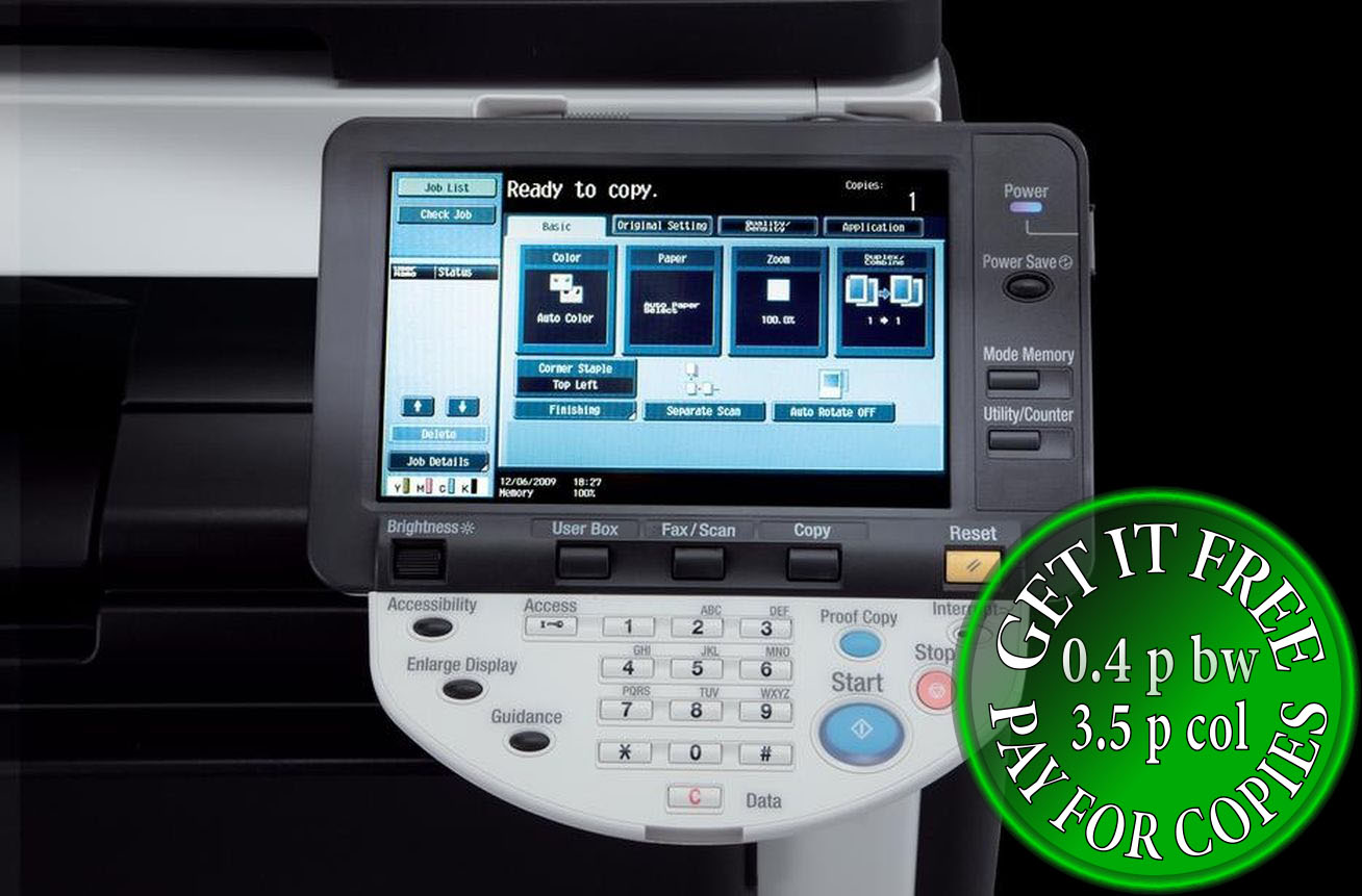 Get a free Konica Minolta Bizhub C360, you just pay for the copies!