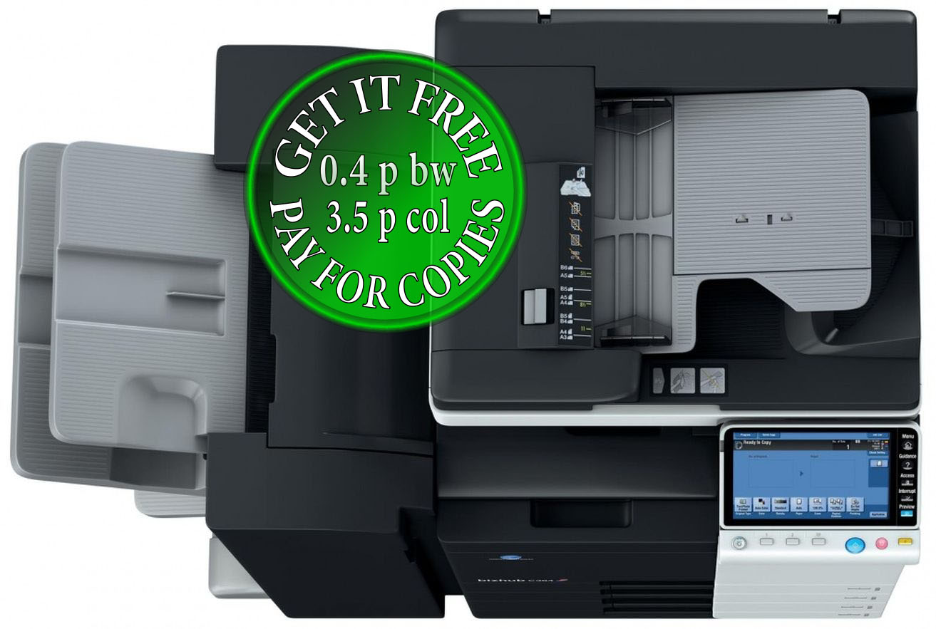 Get a free Konica Minolta Bizhub C364, you just pay for the copies!