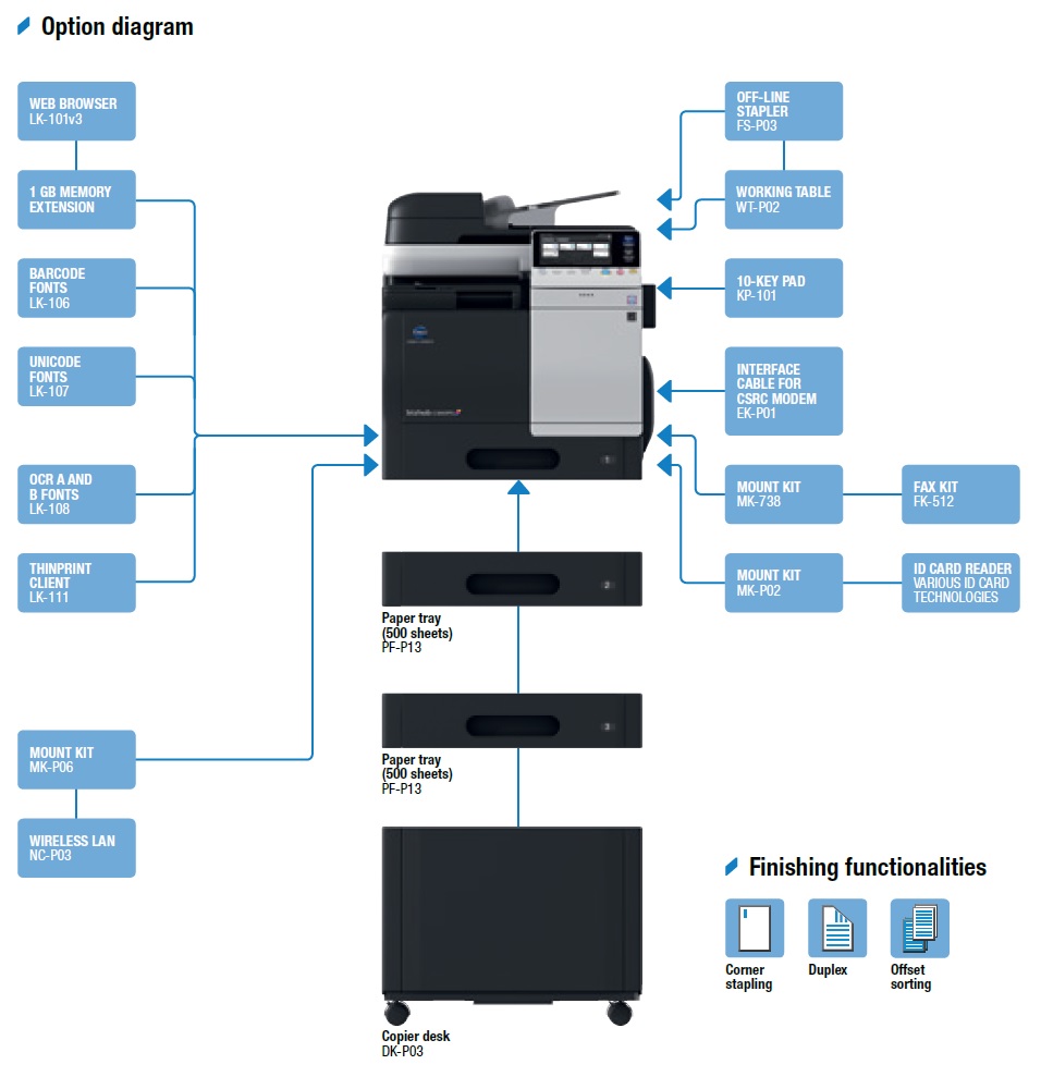 - Basic finishing including stapling, offset-grouping and offset-sorting, to reduce manual work and increase productivity