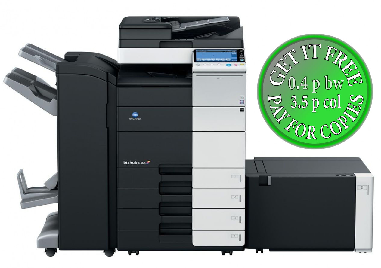 Get a free Konica Minolta Bizhub C454, you just pay for the copies!